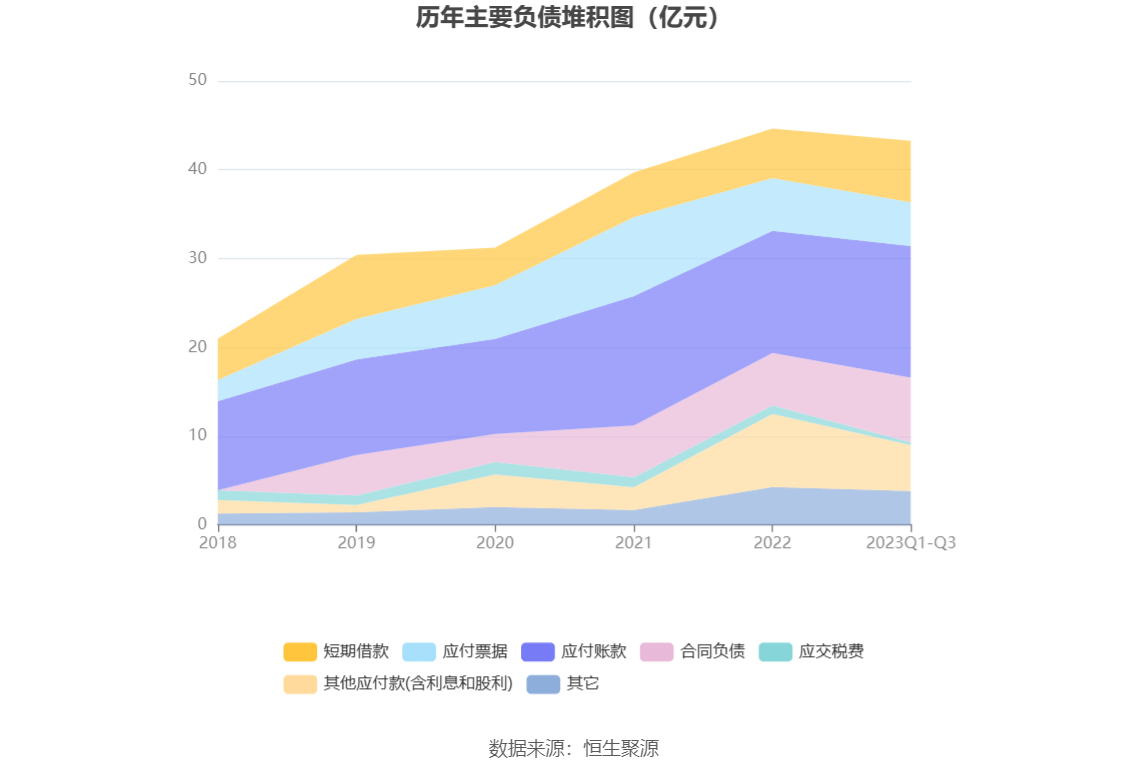 负债重大变化方面,截至2023年三季度末,公司其他应付款(含利息和股利)较上年末减少37.32%,占公司总资产比重下降1.89个百分点;合同负债较上年末增加23.34%,占公司总资产比重上升1.22个百分点;短期借款较上年末增加23.46%,占公司总资产比重上升1.16个百分点;应付账款较上年末增加7.73%,占公司总资产比重上升1.29个百分点。
