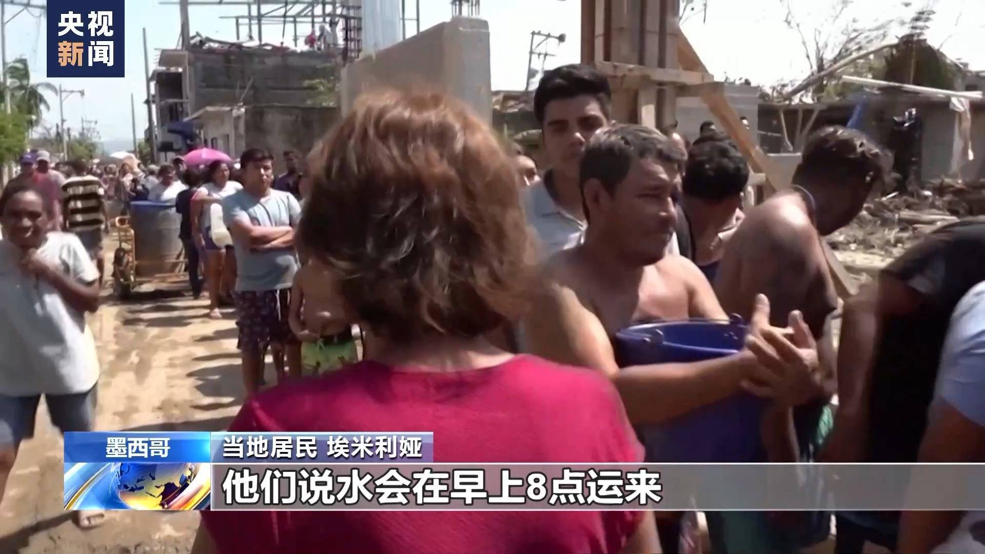 在阿卡普尔科,由于受灾严重,当地出现了食物和用水短缺。29日,大批居民在街头排起长队,希望可以领到一些食物和水。