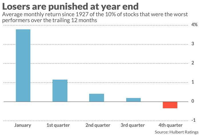 不要急于卖出今年迄今表现最差的股票,因为它们很可能是1月份美国市场表现最好的股票之一。