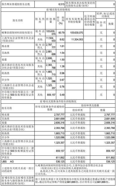 (一)普通股股东总数和表决权恢复的优先股股东数量及前十名股东持股情况表