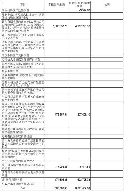 (二)非经常性损益项目和金额