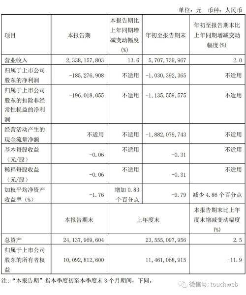 用友网络2023年第三季度营收为23.38亿元,同比增长13.6%;净亏损为1.85亿元,扣非后净亏损为1.96亿元。