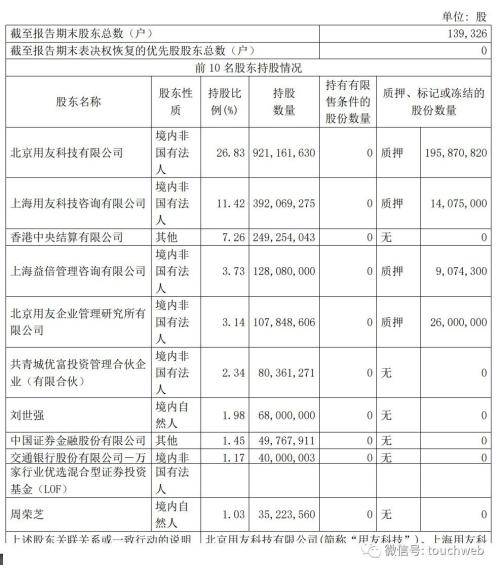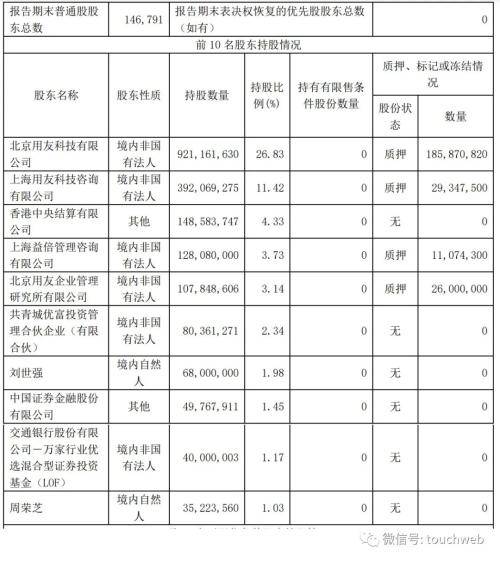 截至2023年6月30日,用友网络股权结构