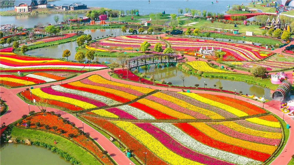 荷兰花海四季有花,特别是每年春季,3000万株郁金香依次轮番开放,更是景区的金字招牌。郁金香是荷兰的象征,荷兰花海的名字由此而来。在荷兰,郁金香有悠久的种植历史和成熟的产业链,而在大丰,郁金香则是当地人借“他山之石”拓荒出来的美丽事业。