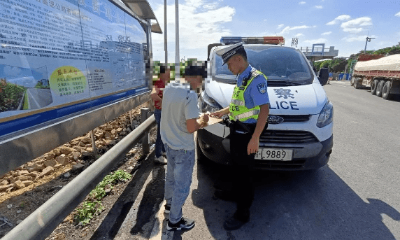 10月20日13时许,百色交警高速三大队执勤民警巡逻至广昆高速田东路段时,发现一辆轻型仓栅式货车停在应急车道,车后方未设置任何警示标志,车辆也未打开警示双闪灯,执勤民警见状立即上前了解情况。