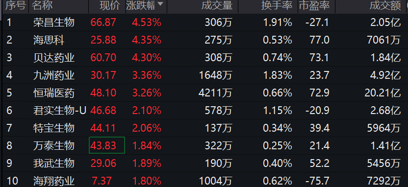 创新药ETF(159992)紧密跟踪中证创新药产业指数,截至2023年10月31日10:25,指数成份股中,荣昌生物领涨4.53%,海思科上涨4.35%,贝达药业、九洲药业等个股跟涨。