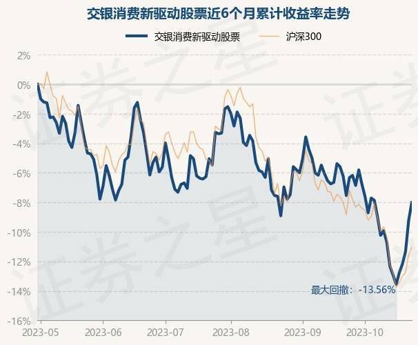 证券之星消息,10月30日,交银消费新驱动股票最新单位净值为1.741元,累计净值为4.299元,较前一交易日上涨1.34%。历史数据显示该基金近1个月下跌1.36%,近3个月下跌6.45%,近6个月下跌7.98%,近1年上涨8.34%。该基金近6个月的累计收益率走势如下图:
