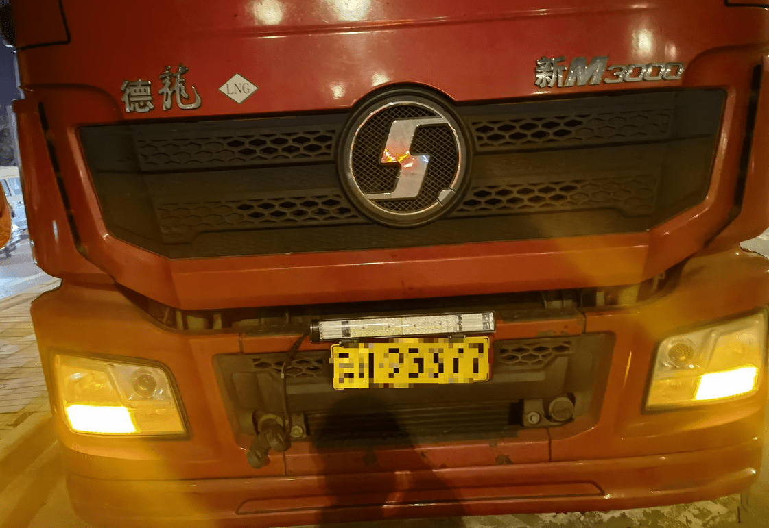 刚过了两个半小时,民警又在同一地点查获一辆未按规定安装号牌的货车。这个违法比较奇特:司机苏某在车牌正上方,私自加装了一个与号牌等长的LED射灯。