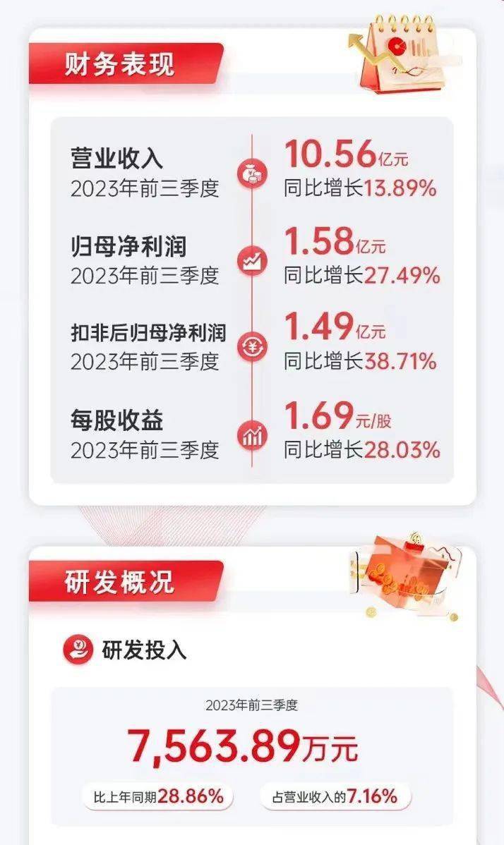 前三季度,华纳药厂实现:营业收入10.56亿元,同比增长13.89%;归母净利润1.58亿元,同比增长27.49%;扣非后归母净利润1.49亿元,同比增长38.71%;每股收益1.69元,同比增长28.03%。