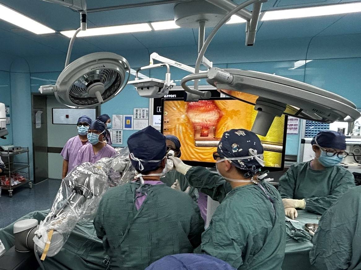 鲍南团队顺利完成首例3D数字手术显微镜下儿童脊髓栓系手术。图源:上海交通大学医学院附属上海儿童医学中心