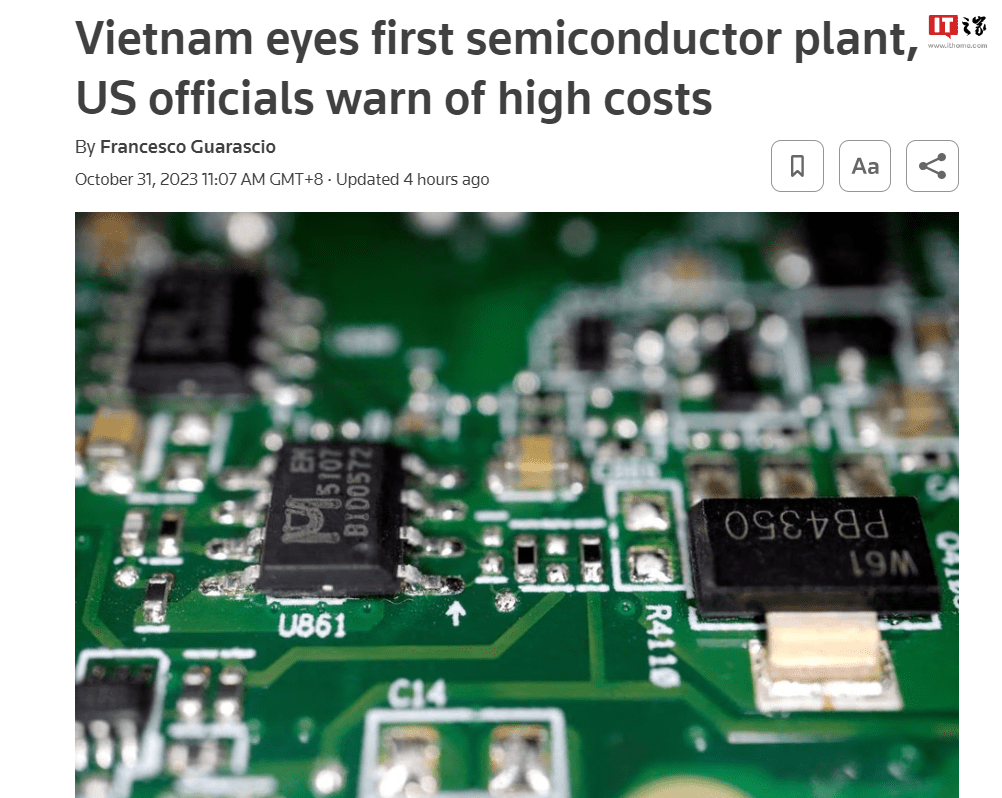 IT之家 10 月 31 日消息,据路透社报道,尽管美国行业官员就高成本发出警告,但越南正在与芯片公司进行谈判,目的是增加在该国的投资,并可能建设首家芯片制造厂。