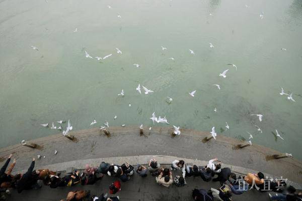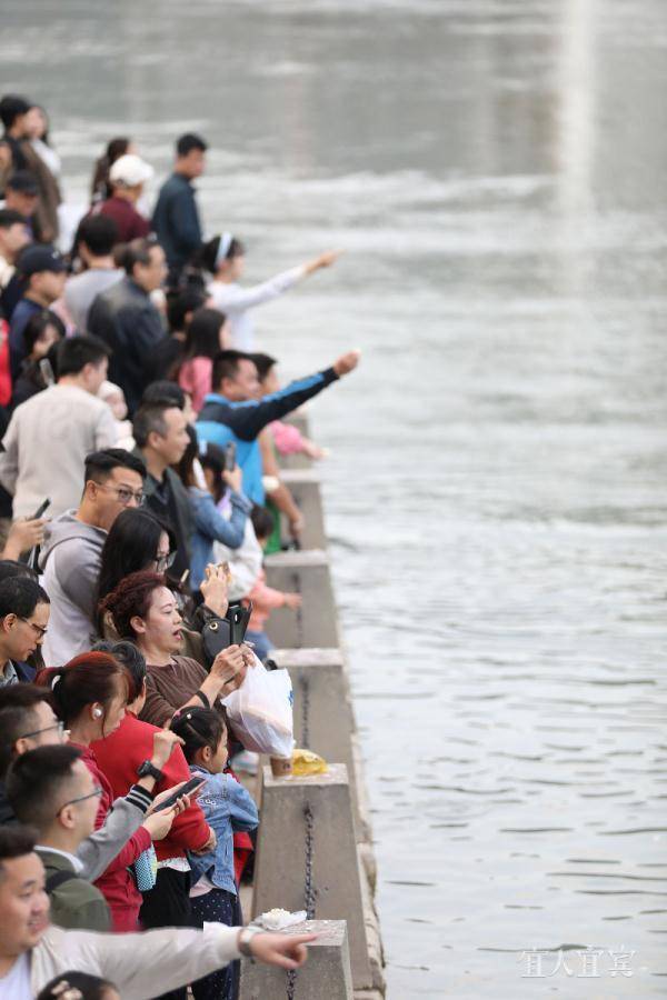 市民、游客围观“鸥翔鱼跃长江头”