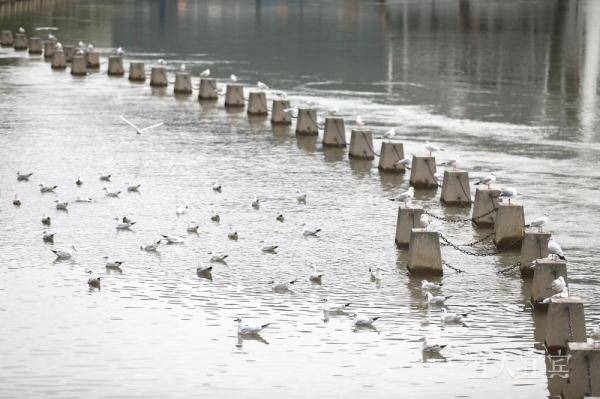 在林波的记忆中,2004年合江门迎来首批过冬的红嘴鸥。此后,每到11月左右,都会有上千只红嘴鸥飞到宜宾三江口过冬,次年3月才会飞走。宜宾市专门在合江门三江口建立了川南第一个红嘴鸥保护区域,采取人工投食、加强巡查等措施,为红嘴鸥提供良好的栖息环境。