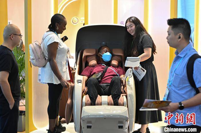 采购商体验一款按摩椅。记者 陈骥旻 摄