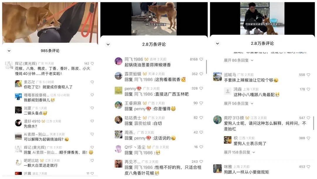 不过更吸引我的是这些视频里的评论。跟评里最多的是:“架上锅,下花椒、大料……”都要跟上垂涎的表情。