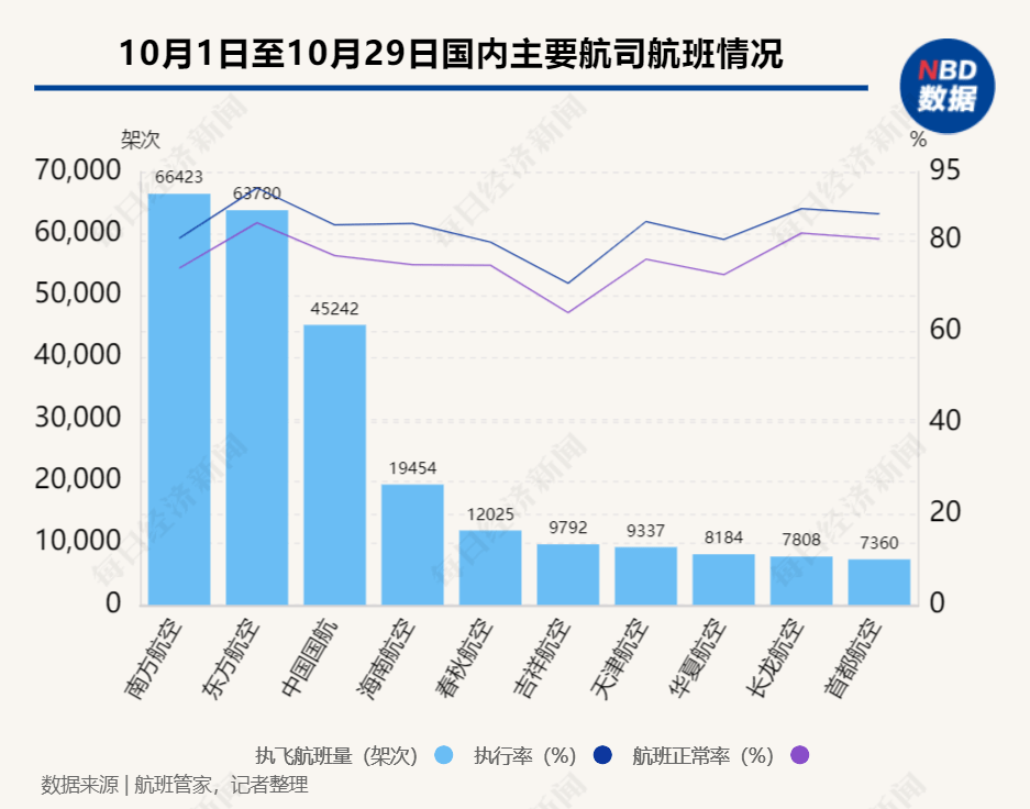 统计期内(10月1日-10月29日),国庆假期为航司的运营表现带来明显的“加成”效果。