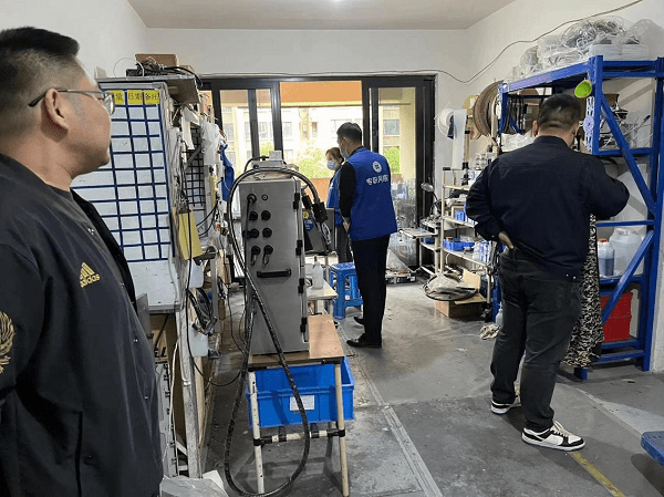 4月13日,峰汇园社区第5网格网格员在日常走访中接居民反映,小区某住户家中传出奇怪味道,经初步排查确认后将情况上报反馈。综合行政执法局工作人员到达现场时,工人正在进行油墨调制生产,执法人员立即叫停并进行询问;同时网格员对室内进行细致检查,发现隐蔽小房间内存放大量带有危化品标识的化学制剂,经反馈,执法局成立工作组展开调查,带回作业人员,网格员留守现场,并协助清点出丁酮类原料840瓶,直到所有危化品妥善处置后才离开,至此藏于居民区里的“危化毒瘤”被彻底清除。