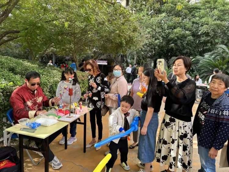 套圈圈、捏面人、扎气球……你有多久没有体验过童年这些项目了?10月28日,黄浦区汇龙新城小区中心广场上人头攒动,“共享童趣嘉年华”邻里节活动正在热热闹闹地进行着:家长们在老弄堂游戏中重温童年记忆,孩子们在科普和非遗摊位中见识到了更有趣的世界,居民们共同欣赏着精彩的舞台表演,也在互动活动中从“陌邻”变成了“睦邻”。
