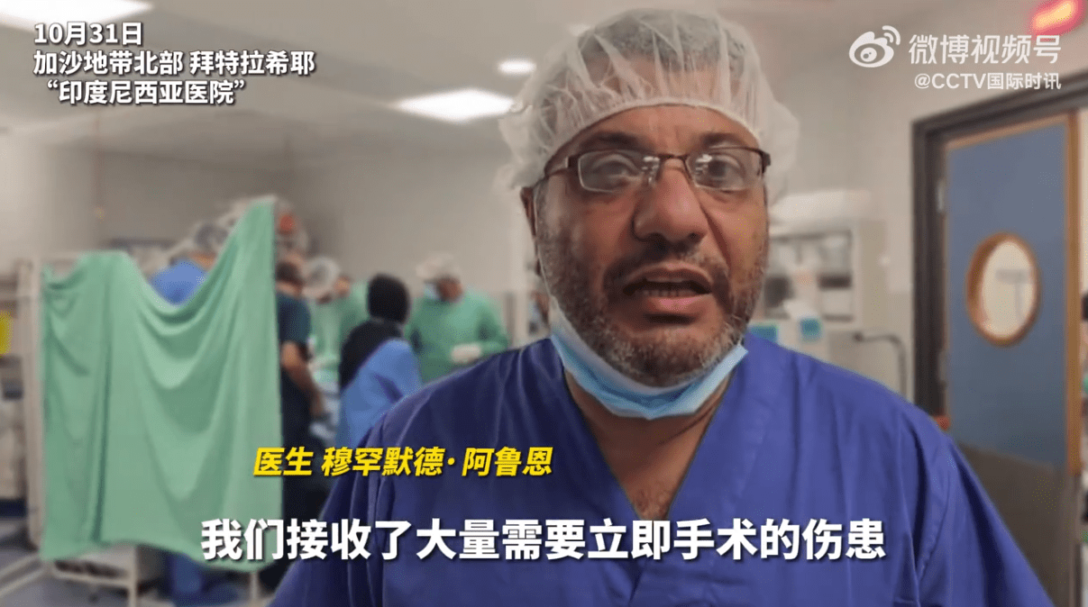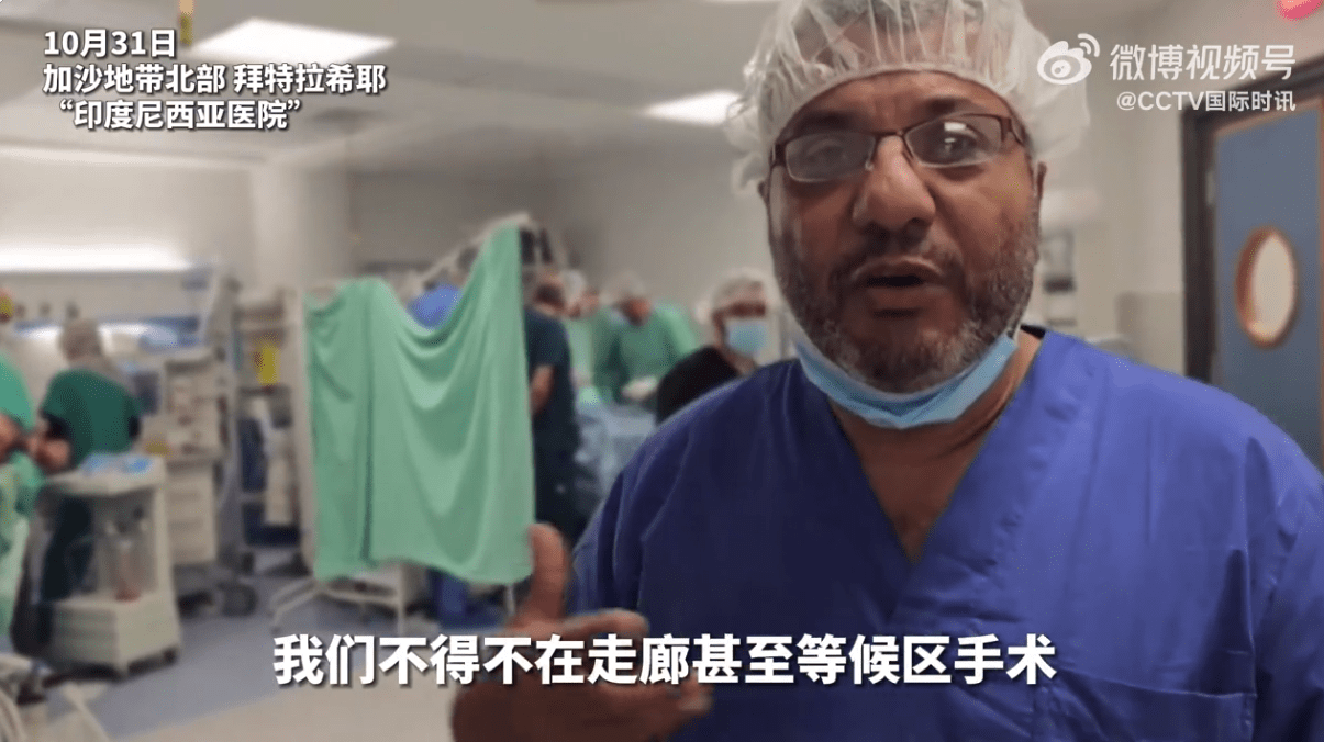 位于加沙地带北部拜特拉希耶地区的“印度尼西亚医院”的医生在接受采访时说,这家医院虽然还在运营,但已在以军联日来的轰炸等行动中受损,且由于病患太多,而手术室有限,医生们不得不在手术部的走廊里为病患们进行手术。