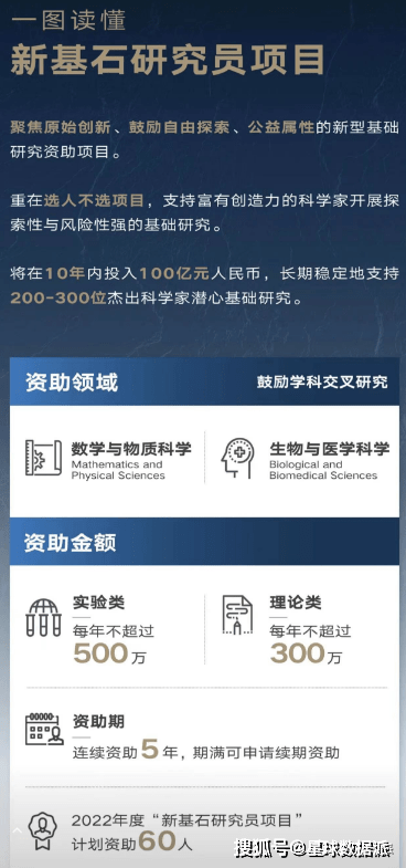 新基石研究员项目,是一项全新的基础研究资助项目,它聚焦于原始创新,鼓励科学家们自由探索,展现出公益属性的新型科研资助模式。2022年,腾讯公司以雄厚的资金实力,宣布在接下来的10年内,将出资100亿元人民币,成立新基石科学基金会。该基金会将独立运营,长期稳定地支持一批杰出的科学家,让他们能够潜心进行基础研究,实现真正的“从0到1”的原始创新。