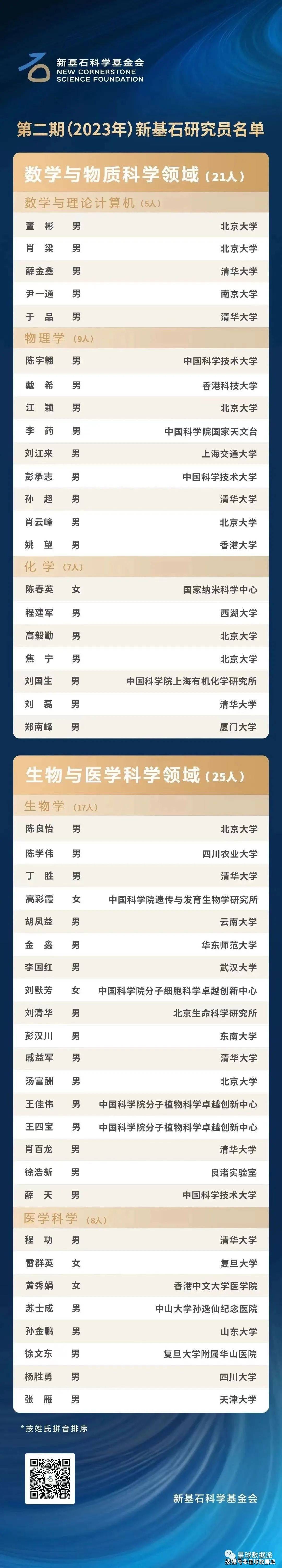 第二期共有来自全国13个城市的28家机构的46位杰出的科学家荣耀地成为“新基石研究员”。他们中有10位是充满活力和潜力的“80后”,其中最年轻的一位仅38岁。这些新基石研究员们,他们像一群勇敢的探险家,怀揣着对科学的热爱和追求,踏上了一段充满挑战和未知的旅程。他们将以自己的智慧和勇气,去开拓那些人类尚未踏足的领域,去解决那些世界级的难题。