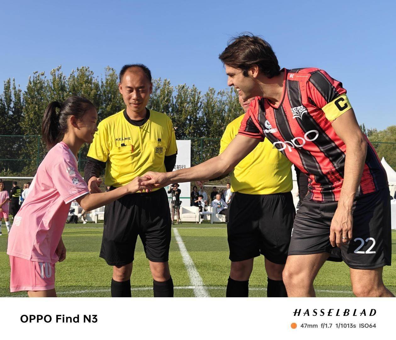 此次卡卡来到北京,不仅参与了由中国友好和平发展基金会携手OPPO共同发起的【“逐梦”青少年女足公益赛】,同时还亲临OPPO全新折叠旗舰Find N3的首销交付仪式。在未来,OPPO作为欧冠官方合作伙伴,将和卡卡一起,通过欧冠指定用机Find N3记录更多欧冠赛场上的精彩时刻。
