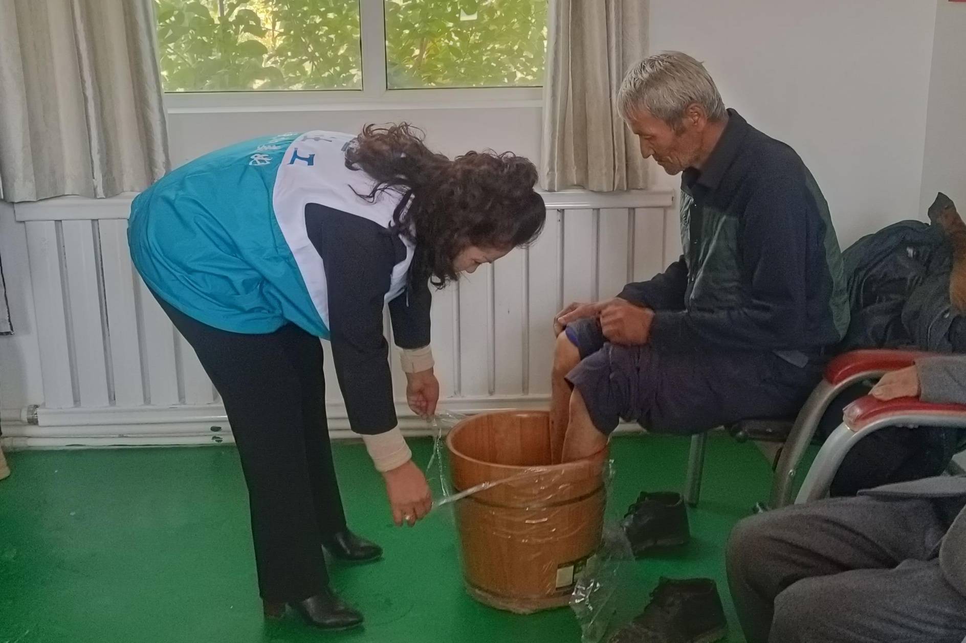 志愿者为老人洗脚 (谢仁古丽·艾萨 摄)