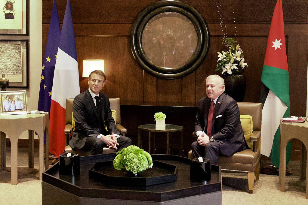 当地时间2023年10月25日,约旦安曼,约旦国王阿卜杜拉二世会见法国总统马克龙(左)。视觉中国 图