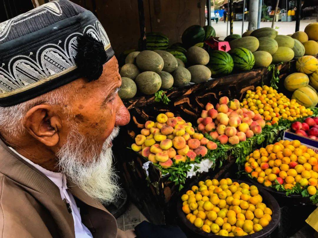 尤其是在八、九月份,是水果集中上市的时间。彼时,新疆各地的集市巴扎内熙熙攘攘,叫卖声、吆喝声和讨价声此起彼伏。在摊位上,西瓜、哈密瓜、老汉瓜、无花果、蟠桃、葡萄、火龙果等应有尽有。
