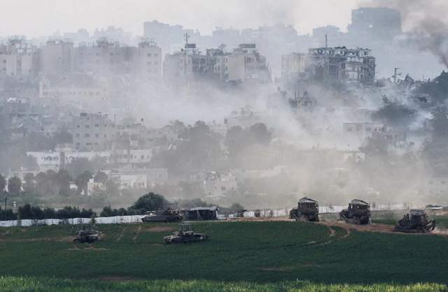 (在加沙北部边界外集结的以军坦克)