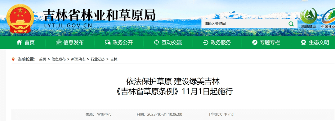《吉林省草原条例》经吉林省第十四届人大常委会第六次会议于2023年9月27日通过,于11月1日起施行。1987年省人大常委会通过的《吉林省草原管理条例》同时废止。