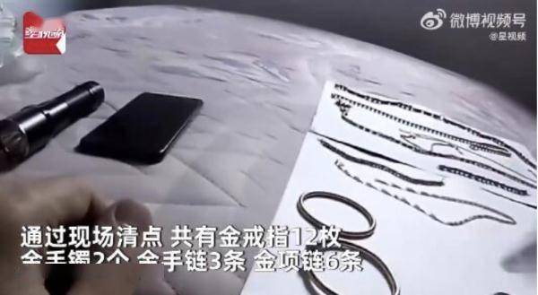 在吊顶上发现一袋来源不明的黄金首饰