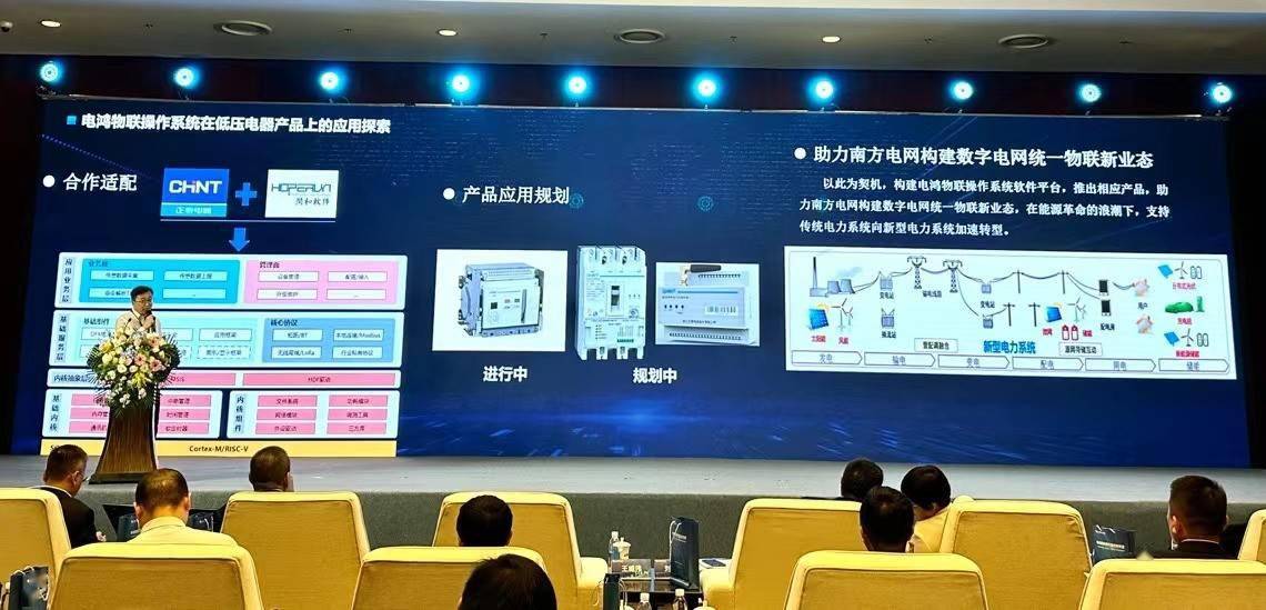 正泰电器在演讲分享中介绍与南方电网公司及润和软件在电鸿物联操作系统领域的合作成果