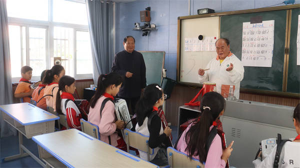 近日,盱眙县关工委主任柳怀玉、县教体局关工委主任余治水等一行人走进县古桑中心小学调研指导校外教育辅导站工作。