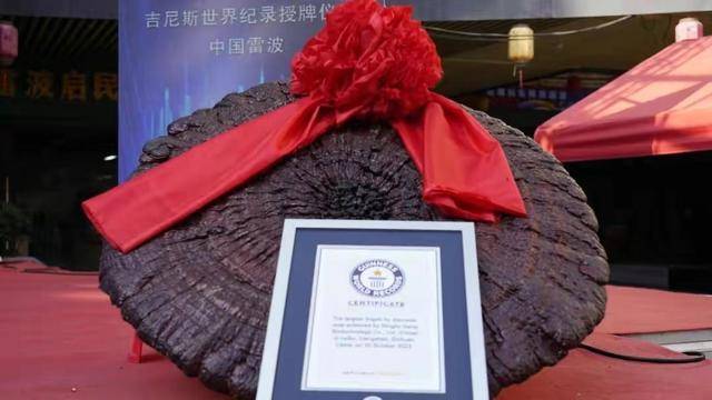 ▲获吉尼斯世界纪录认证的“世界最大人工栽培赤灵芝”。图据雷波融媒