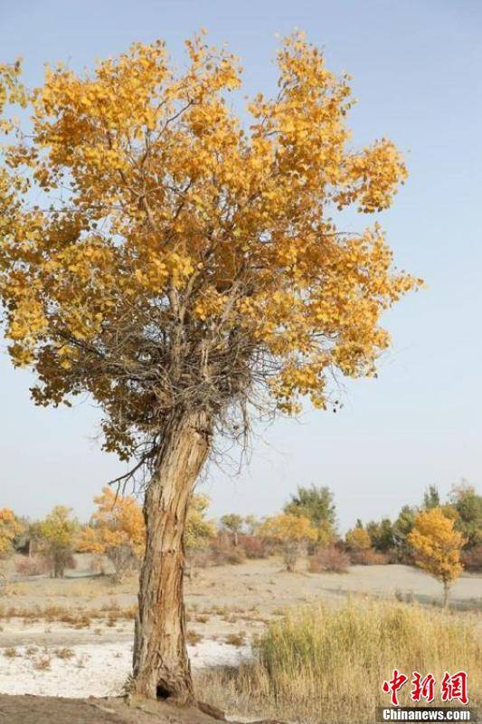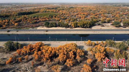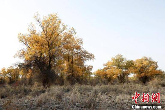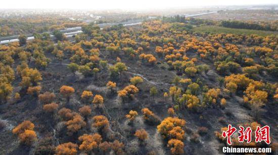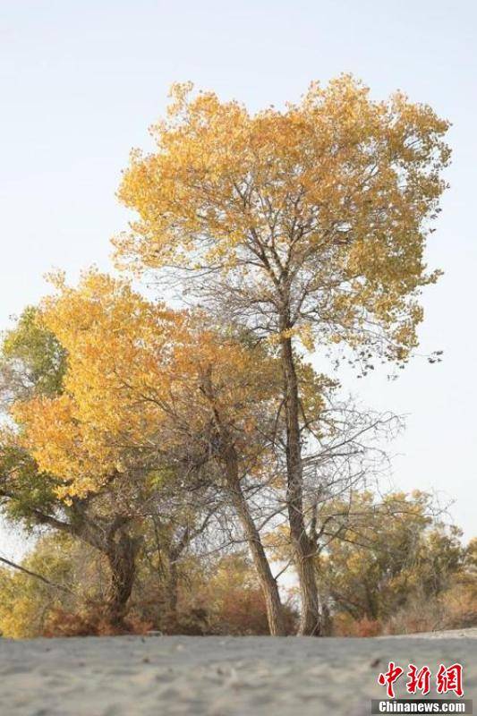地处新疆南部的新疆生产建设兵团第一师阿拉尔市大面积野生胡杨新近迎来“醉”美观赏季。王万军 摄