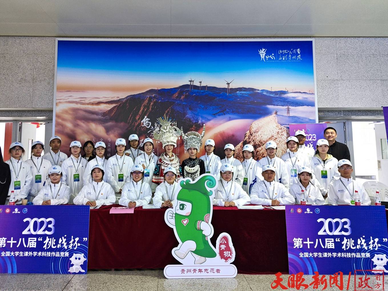 10月27日至31日,由共青团中央、中国科协、教育部、中国社会科学院、全国学联、贵州省政府共同主办的第十八届“挑战杯”全国大学生课外学术科技作品竞赛在贵州大学举办。来自贵州大学、贵州师范大学、贵州民族大学等10所院校的1720名青年志愿者用“微笑、真诚、优质、高效”展现了“小青椒”的青春风采。