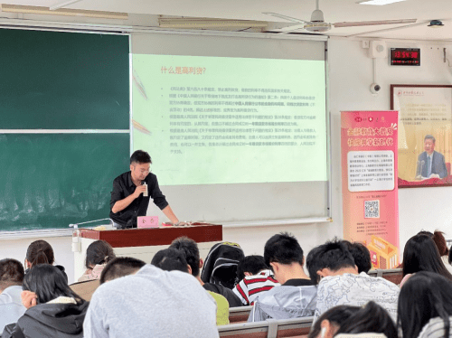 主讲老师分为两个板块为同学们普及了金融诈骗相关知识。首先,老师介绍了金融诈骗主要群体集中在老人和大学生之间,并针对大学生展开解读,导致大学生被骗的主要原因是出入社会及风险意识不高。接着分别对提高防范意识、如何预防金融诈骗进行展开论述。诈骗分为校园诈骗、投资诈骗、养老诈骗等等,而这些又离不开高利贷这一媒介,在充分阐述其意义后,老师对于预防此类情况提供了方法供同学们学习与借鉴。