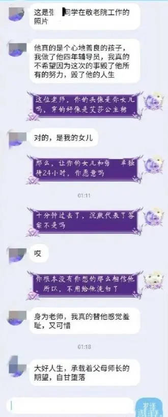 而辅导员还是有些于心不忍,就向女博主发送信息,为他求情——男生后悔了,精神状态很差,需要吃药才能入睡。他已经保研了,如果这件事闹了出来,他的资格很有可能被取消。