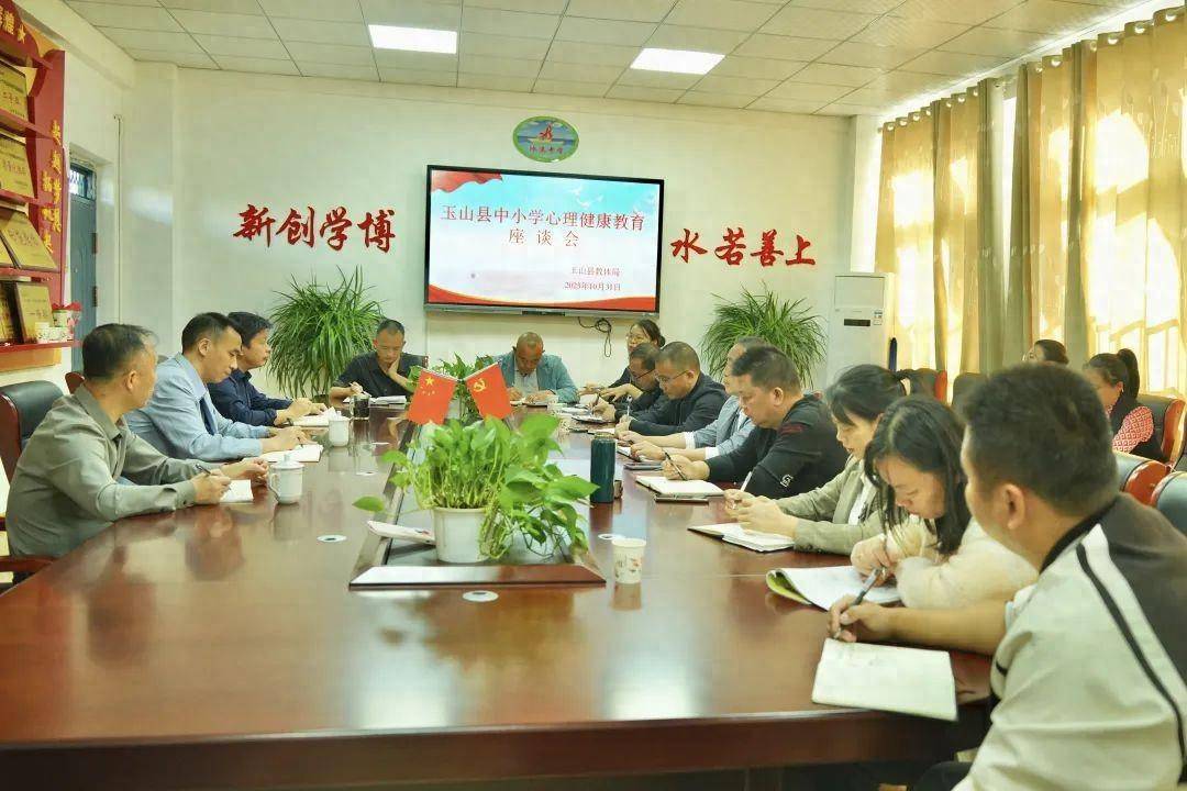 10月31日上午,玉山县政协副主席、教体局党委书记赵东青到冰溪初中开展中小学心理健康教育调研,并召开座谈会。教体局党委委员谢传禄陪同,冰溪初中党支部书记、校长徐文胜主持,冰溪初中心理健康教育专业团队教师、各年级分管领导、班主任代表、学科代表、心理健康教育志愿者代表等共二十多人参加座谈。