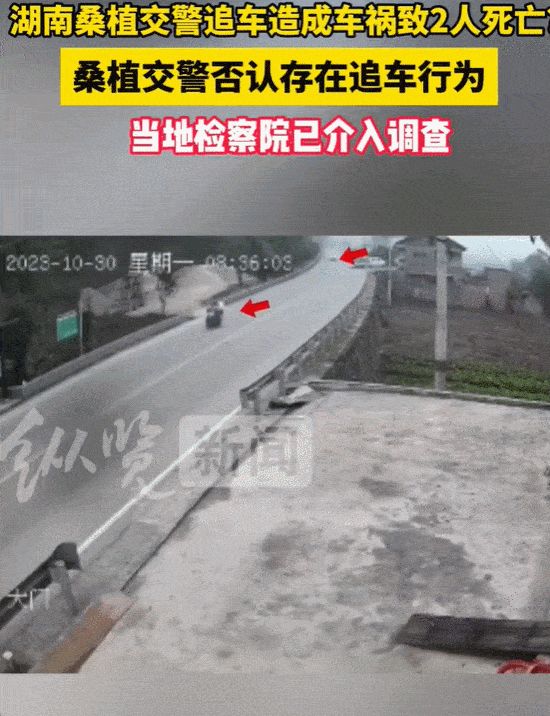 10月30日,网传湖南桑植交警追赶一辆摩托车,导致摩托车与一辆对向行驶的客车相撞,造成一男一女死亡的视频。桑植县交警大队负责人接受媒体采访时表示,上述事故确有两人死亡,但否认存在交警追车的情况。