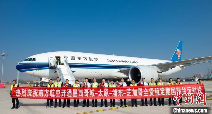 该航线由南航执飞,每周执行一班,进港航班为墨西哥城至太原,主要承运水果、冰鲜、配件等货物,出港航班为太原-浦东-芝加哥,承运货物主要包括电商件、手机配件、电子烟等。