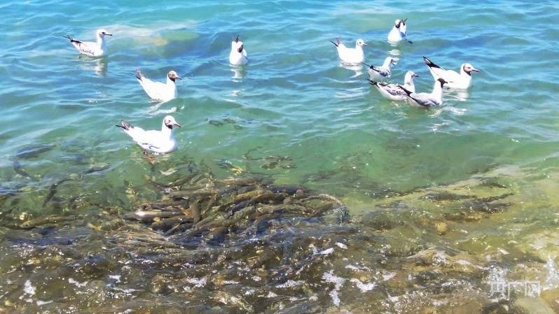 青海湖鱼鸟共生(央广网记者 汪晓青 摄)