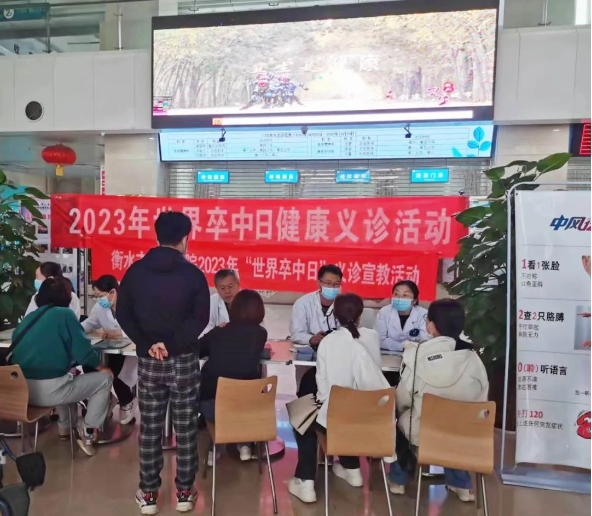 10月29日是第18个“世界卒中日”。今年的主题为“卒中:重在预防”。脑卒中是一种致残率、死亡率、复发率均极高的脑血管疾病,其发病急、病情进展迅速,可导致肢体瘫痪、语言障碍、吞咽困难、认知障碍、精神抑郁等,严重影响患者生活质量,给家庭和社会造成巨大负担。对脑卒中进行早预防、早发现、早治疗,最大程度减少脑卒中的发生及其危害,对保障人民健康具有重大意义。河北衡水市人民医院(哈励逊国际和平医院)围绕“世界卒中日”组织开展了一系列的健康科普和义诊活动,为广大百姓提供医疗服务,向大众传递脑卒中防治知识。