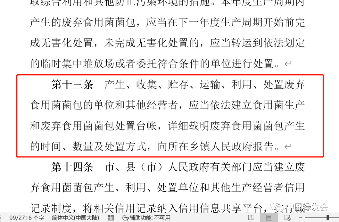 【建议二】建议在【第十三条】中加入:废弃食用菌菌包的产生、利用、处置数据信息,要在政府官网长期公示、公开,确保信息公分公示、公开透明。