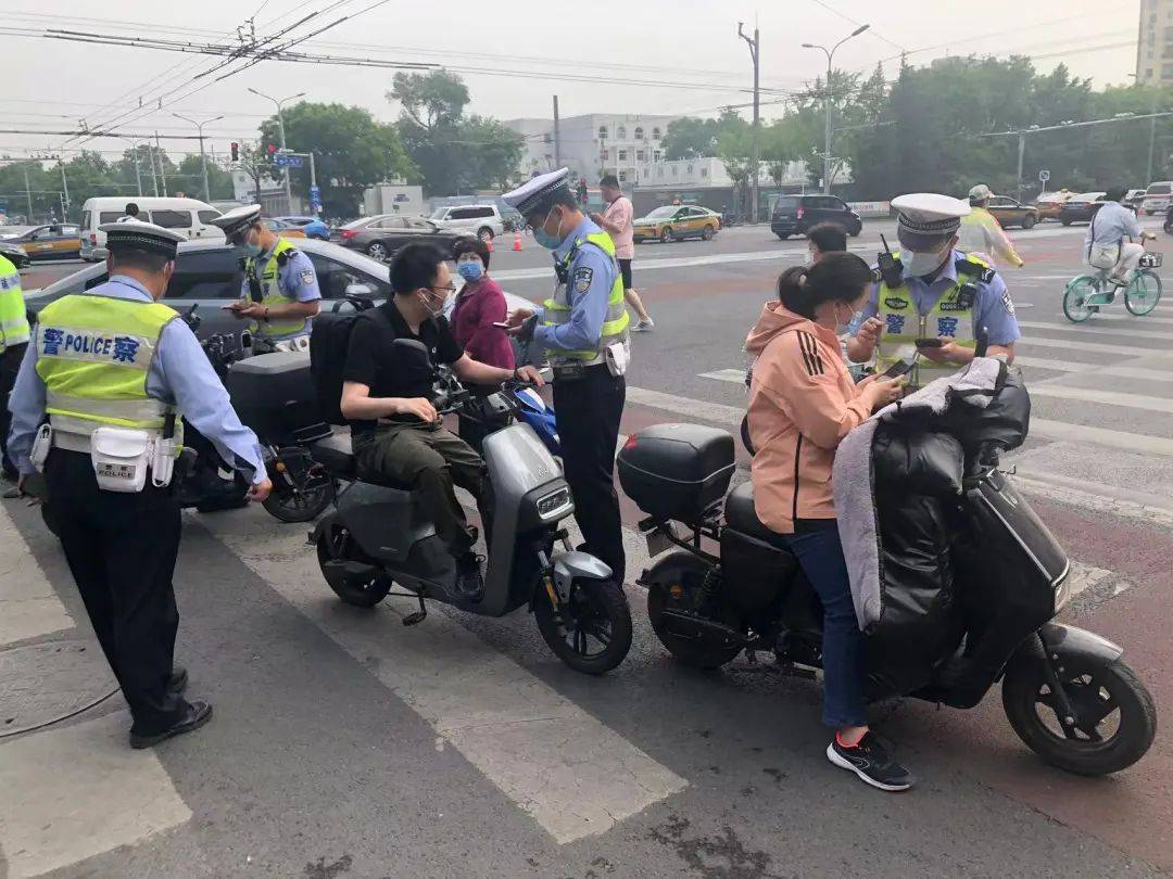 广安门内大街上,交警正在纠正市民的违法骑行行为。资料图 记者 景一鸣摄