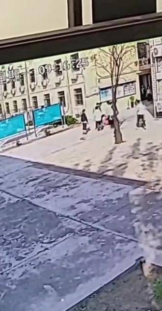 ▲监控视频中卢女士女儿讲述的第二次被打的情况