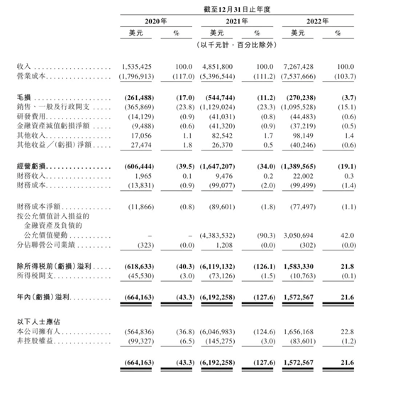 招股书显示,极兔2020年、2021年、2022年利润分别为-6.64亿美元、-61.92亿美元、15.73亿美元;经调整后分别亏损4.76亿美元、9.1亿美元、8亿美元。