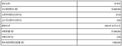 公司于2023年11月1日收到公司股东张学政先生通知,获悉其将所持有的部分公司股份办理了解除质押,具体情况如下: