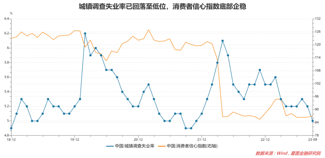 消费侧看,除受益于低基数效应外,出口和投资边际向好,将直接助力稳就业、稳收入,提振消费者信心。另外,随着存量房贷利率调降、个税抵扣额提高等真金白银政策落地,叠加城镇调查失业率连续回落,消费者信心指数底部企稳,消费复苏的趋势仍会延续。